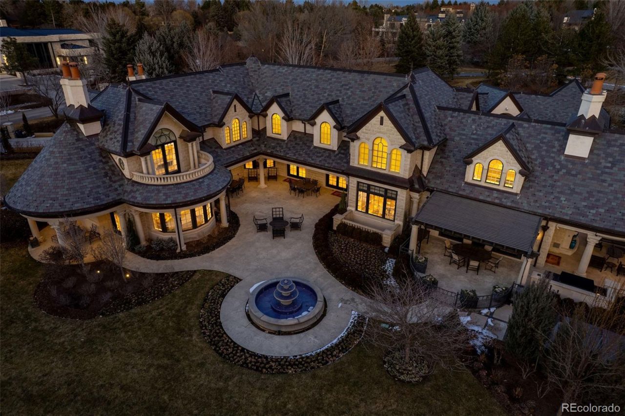 Located within the prestigious, guard-gated Cherry Hills Park community, this exceptional estate offers timeless elegance, privacy, and refined luxury on approximately 2.4 acres of beautifully landscaped grounds. Designed for both grand entertaining and comfortable everyday living, the residence spans roughly 12,075 square feet and includes 5 bedrooms, 8 bathrooms, and two 2-car garages connected by handsome porte-cochere.The home features a thoughtfully designed floor plan with formal living and dining rooms, inviting gathering spaces, and seamless indoor-outdoor connections. A standout upgrade is the custom Mick De Giulio gourmet kitchen, including one-of-a-kind German pounded silver hood and hardware plus elegant gold leaf cabinetry, combining quality craftsmanship with high-end appliances and functional beauty. The primary suite is a private retreat with a spa-inspired bath and dual custom closets, while secondary bedrooms are generously sized with en-suite baths. Additional interior highlights include vaulted ceilings, a flexible upper-level loft space, and beautifully appointed finishes throughout. A hydraulic elevator servicing all three levels adds convenience and accessibility.Designed for lifestyle and wellness, the home includes an indoor putting green with precise two-degree slope, fully equipped fitness center with custom built, infrared sauna, and multiple entertainment spaces. Outdoor amenities are equally impressive, featuring multiple lush gardens, fountains, a bocce ball court, hot tub, and expansive patios ideal for hosting gatherings or enjoying peaceful evenings.Recent and notable upgrades include an integrated state-of-the-art security system, extensive custom millwork, refined architectural details, and meticulously maintained landscaping. Combining classic architecture with modern luxuries, this rare Cherry Hills Village estate offers an unparalleled living experience in one of Colorados most coveted neighborhoods.
