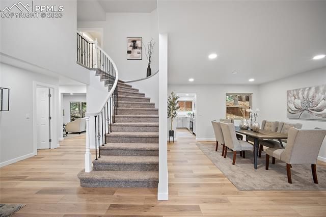 Stop scrolling—this is the fully renovated Rockrimmon home you’ve been waiting for. Beautifully updated and truly move-in ready, this 5-bedroom, 4-bathroom home in Rockrimmon offers the perfect blend of modern upgrades and a peaceful, nature-inspired setting. Backing to mature trees, the property creates a private, tucked-away feel while still being conveniently located with easy access to everything Colorado Springs has to offer. Inside, the home has been completely refreshed with brand-new interior paint, plush new carpet, updated windows, and a stunning remodeled kitchen. The kitchen is the heart of the home, featuring stainless steel appliances, sleek granite countertops, and a spacious center island—perfect for gathering, entertaining, or everyday living. An inviting eat-in breakfast nook flows seamlessly into the living room, creating an open and functional layout filled with natural light. The main level offers flexible living with a bedroom and full bathroom, along with a private suite featuring its own ensuite bath—ideal for comfortable main-level living. The full basement provides additional space for a second living area, guest retreat, or whatever fits your lifestyle. Step outside and enjoy the peaceful backdrop of trees and surrounding wildlife, offering a sense of privacy and connection to nature that makes this home truly special.