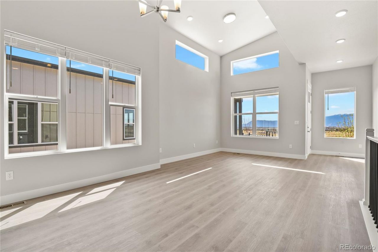 Located in the highly sought-after Wolf Ranch community, this ranch-style new construction home offers unobstructed Pikes Peak views, open space, and a layout that balances design and function. With a west-facing front patio, the home captures mountain sunsets and sits just steps from neighborhood trails and open space. The interior features a cohesive, modern palette with LVP flooring across the main living areas, quartz surfaces, and stainless steel appliances, including refrigerator. The kitchen is anchored by a central island and flows directly to both the dining area and covered patio. The main level includes two bedrooms, with a well-proportioned primary suite featuring a walk-in closet and private bath with dual vanities, quartz countertops, and spacious shower. The finished basement includes a spacious family room, two additional bedrooms, a 3/4 bathroom, and a large unfinished storage or flex space. A true 3-car garage offers flexibility for parking, storage, or hobby space, with a layout that connects efficiently to the home. Wolf Ranch is known for its established amenities, including a private lake, recreation center with pool and splash park, parks, and an extensive trail system. The combination of location, views, and finishes creates a well-positioned opportunity within a thoughtfully planned community with a variety of amenities.